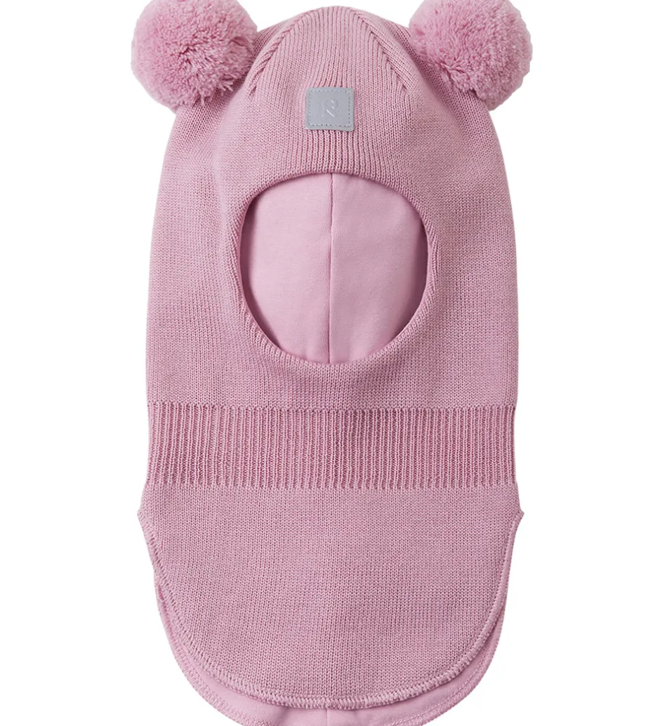 Reima elefanthuen har en rund hovedform og er pyntet med to pomponer på toppen. Elefanthuen er strikket i uld, men har indvendigt et blødt bomuldsfor.