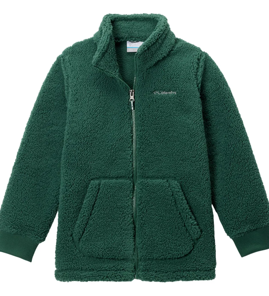 Columbia fleecejakken har en høj hals og lange ærmer med brede ribkanter. Fleecejakken åbnes fortil med en gennemgående lynlås og har i øvrigt en opdelt kængurulomme.