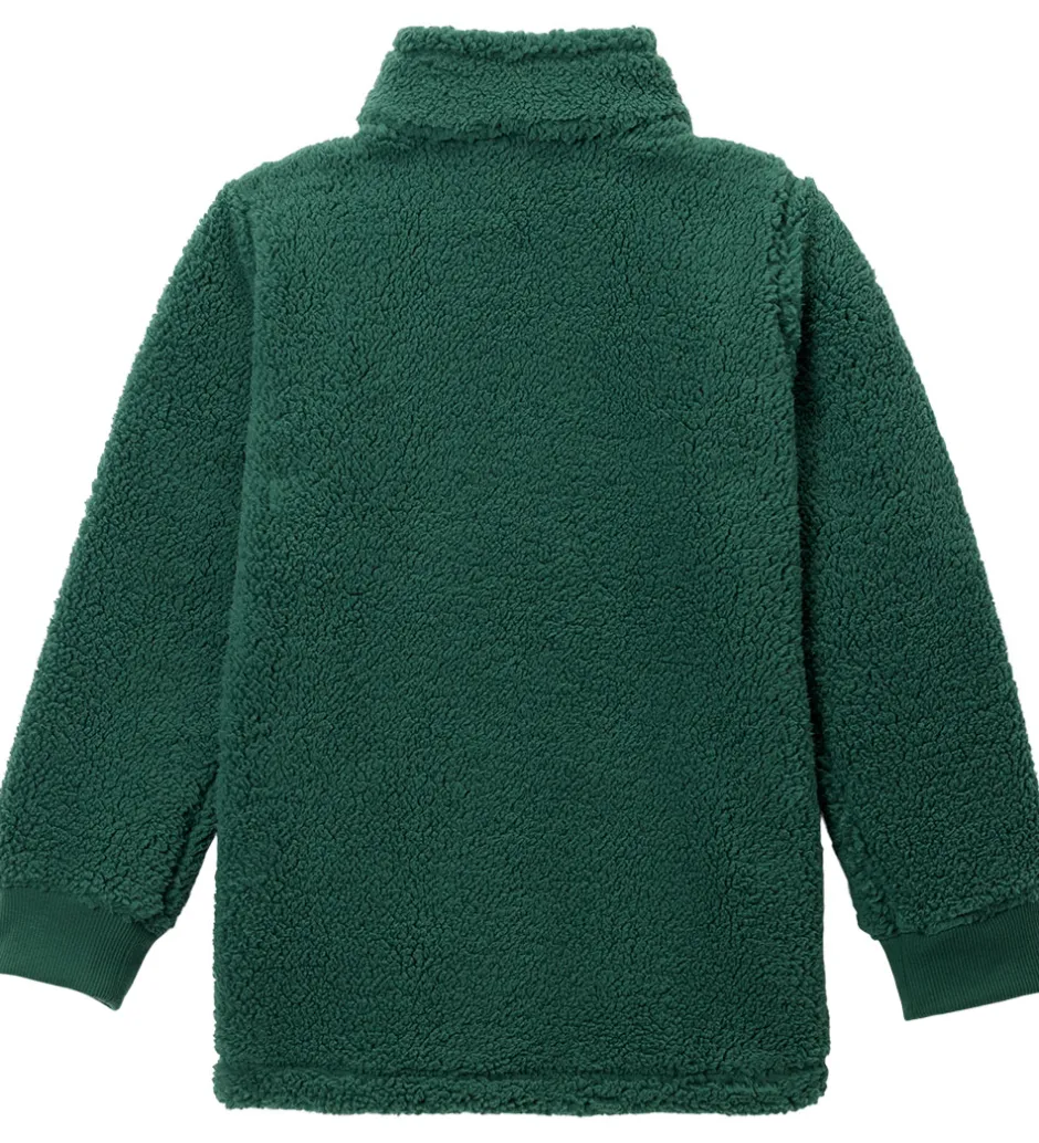 Hyggelig Columbia fleecejakke i grøn teddyfleece med et broderet logo i grå på venstre bryst.