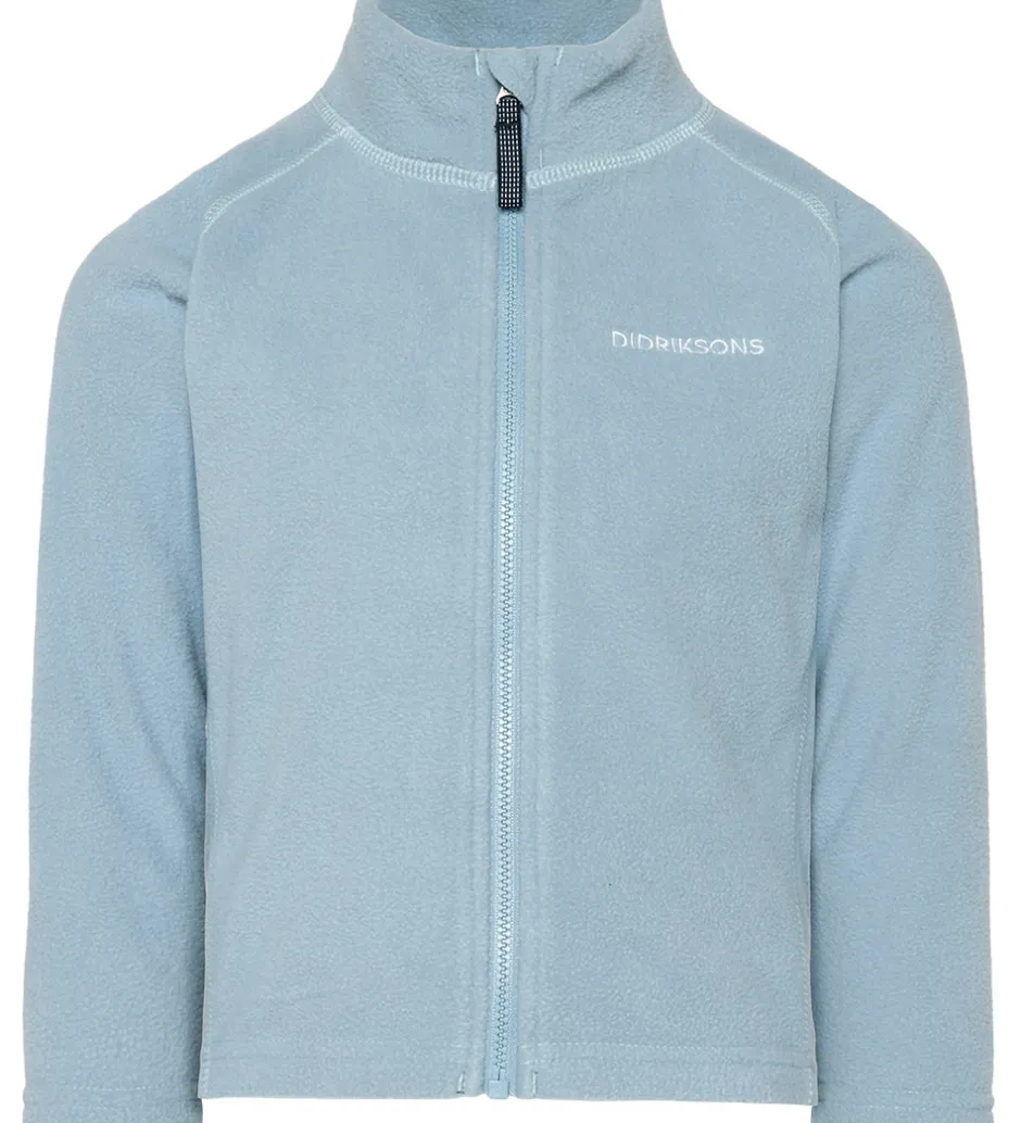 Didriksons fleecejakken har en høj hals, og den åbnes med en lynlås med hagebeskytter.