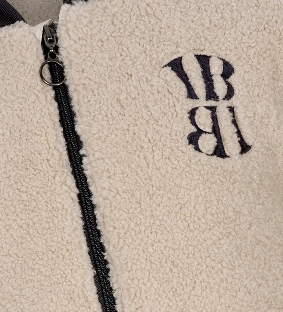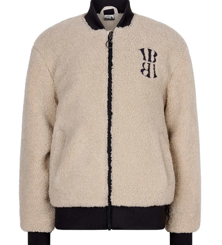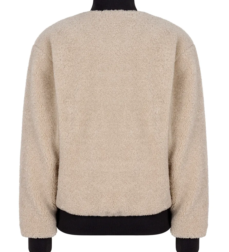 Skøn Indian Blue Jeans fleecejakke i beige teddyfleece med koksgrå ribkanter. På venstre bryst er der et broderet logo.