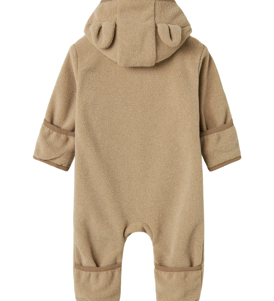 Vidunderlig Name It fleecedragt i en flot, lys brun farve.