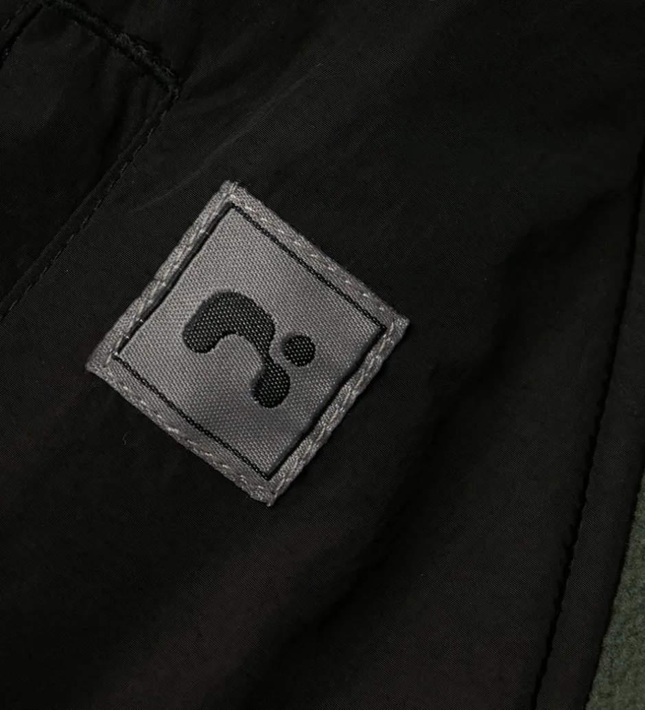 Lækker Name It fleecejakken i mørkegrønt, fint fleece og med sorte, glatvævede detaljer.
