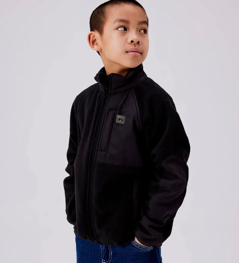 Lækker Name It fleecejakken i sort, fint fleece og med glatvævede detaljer.