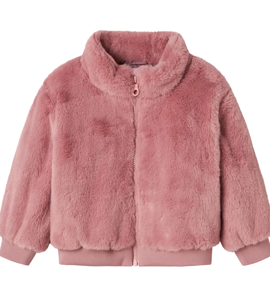 Blød Name It jakke af imiteret pels i en flot, lys, rosa farve.