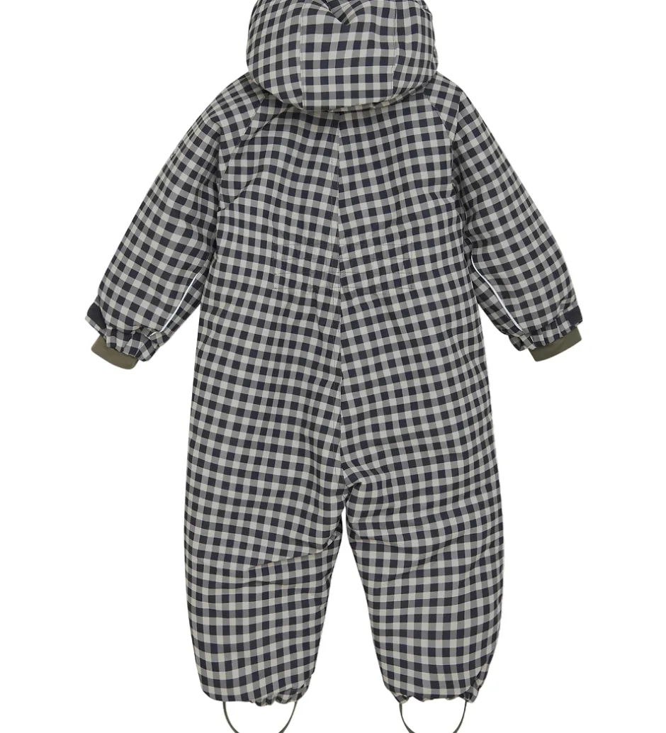 Dejlig En Fant flyverdragt med tern i mat sort, grå og beige.