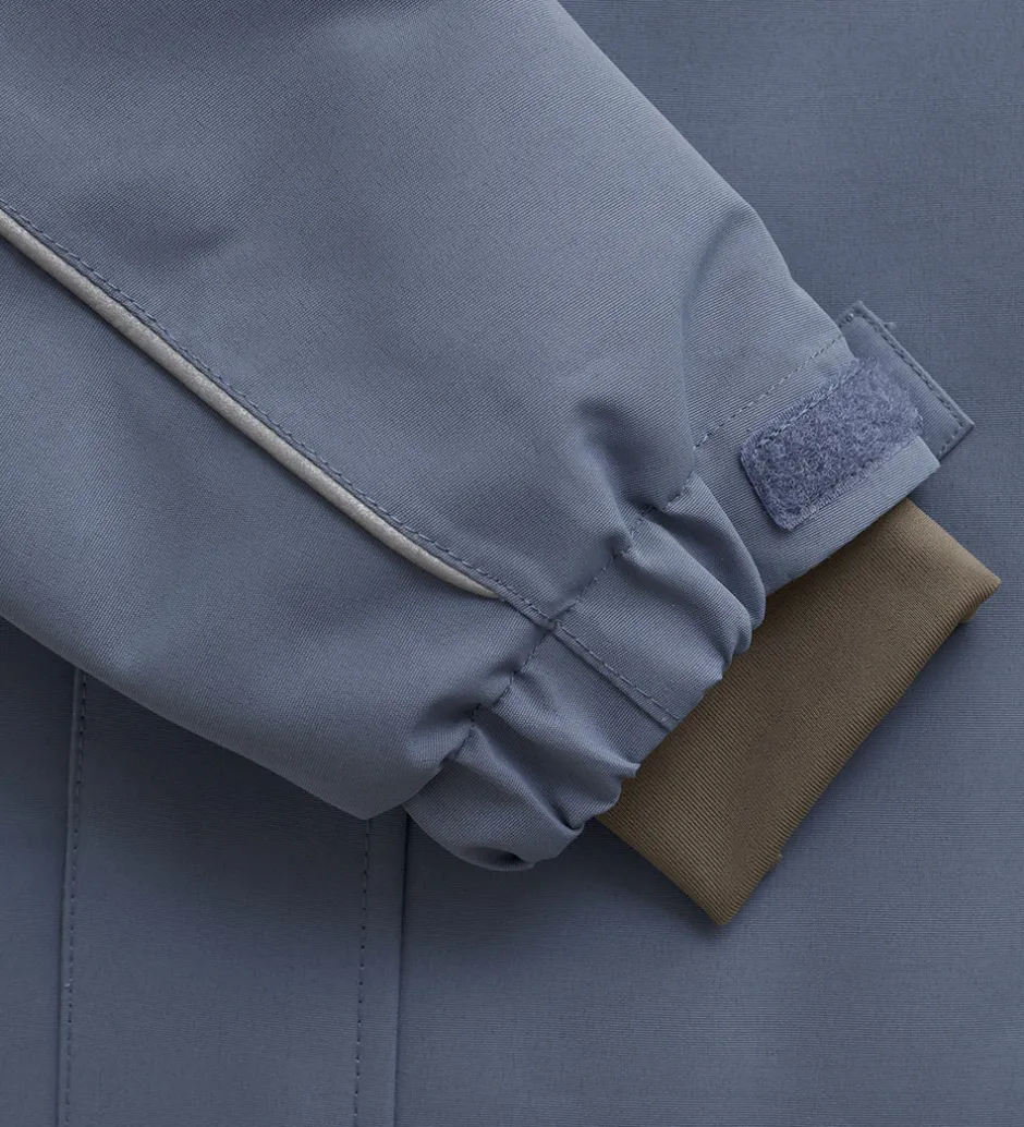 Ærmerne har praktiske snefang med brede kanter i strækbart polyester og med et hul til tommelfingeren, og ærme-elastikkanterne kan strammes ind med velcro. Benåbningerne har elastikkanter i åbningerne samt aftagelige, justerbare støvlestropper i gummi.