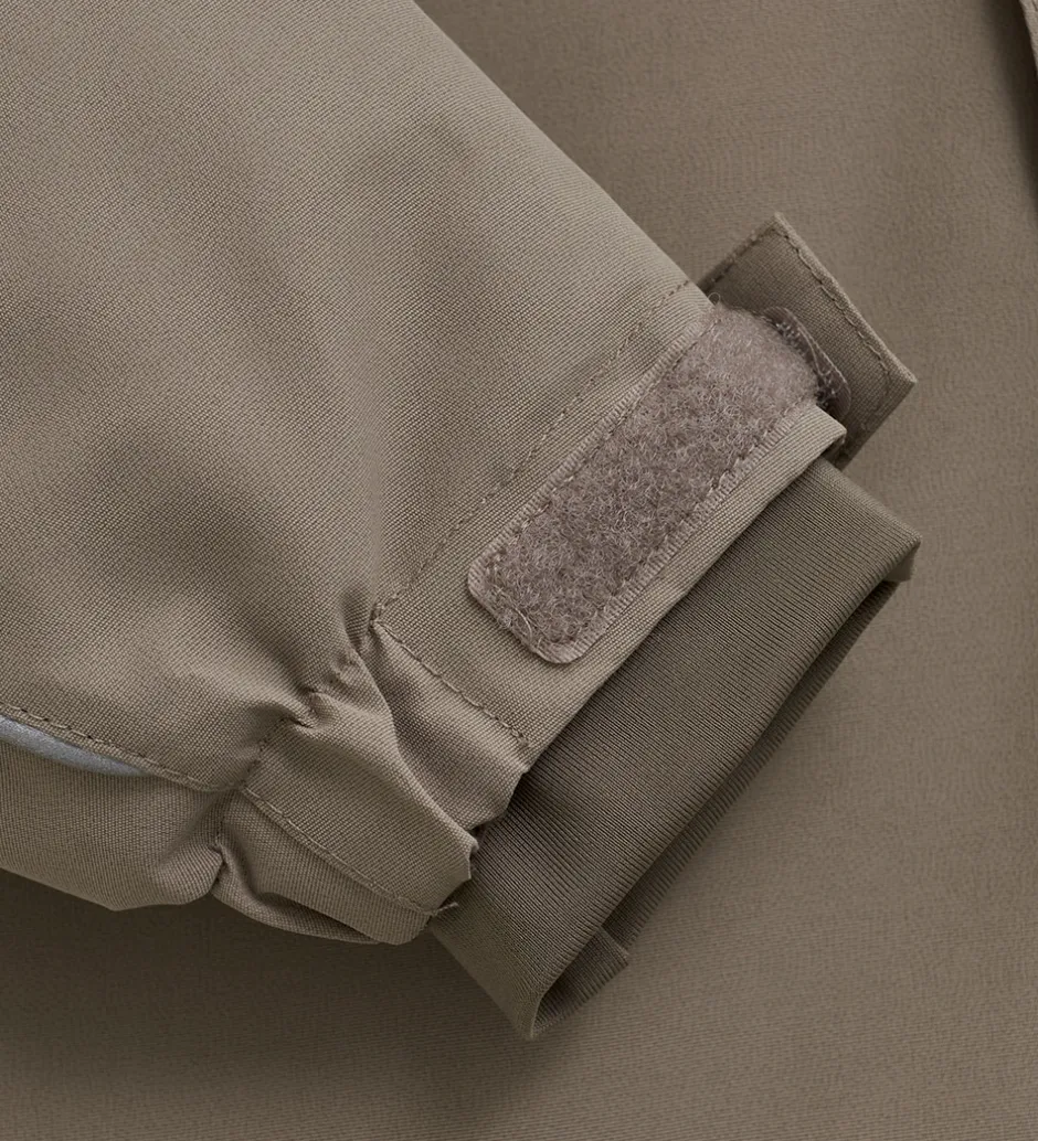 Ærmerne har praktiske snefang med brede kanter i strækbart polyester og med et hul til tommelfingeren, og ærme-elastikkanterne kan strammes ind med velcro. Benåbningerne har elastikkanter i åbningerne samt aftagelige, justerbare støvlestropper i gummi.