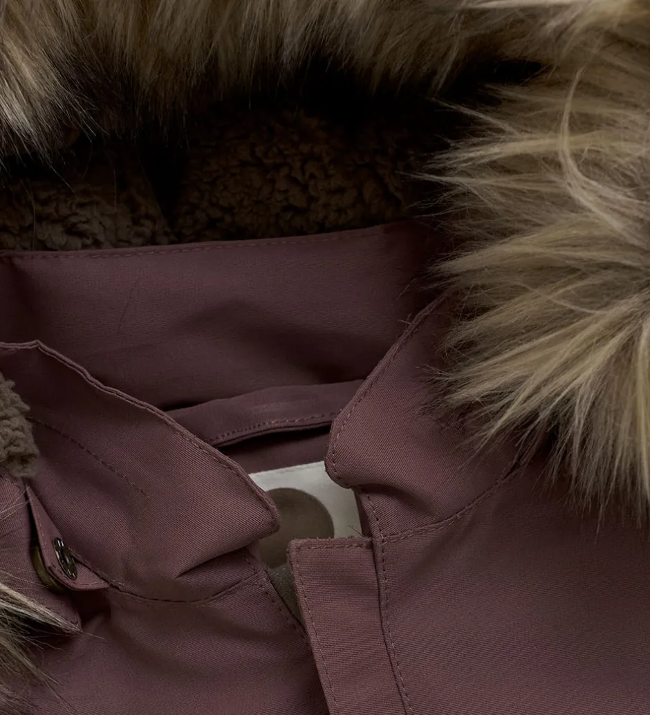 Flyverdragten er vatteret og foret med teddyfleece i hætten og den øverste del af kroppen, mens resten har et glatvævet for.