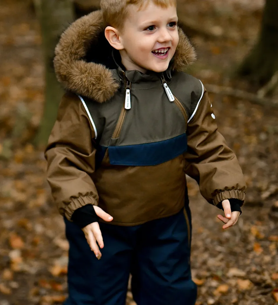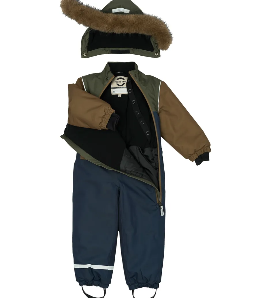 Dejlig Mikk-Line flyverdragt i army. brunn og navy med reflekslogoer og -kanter.