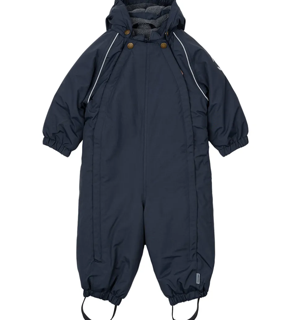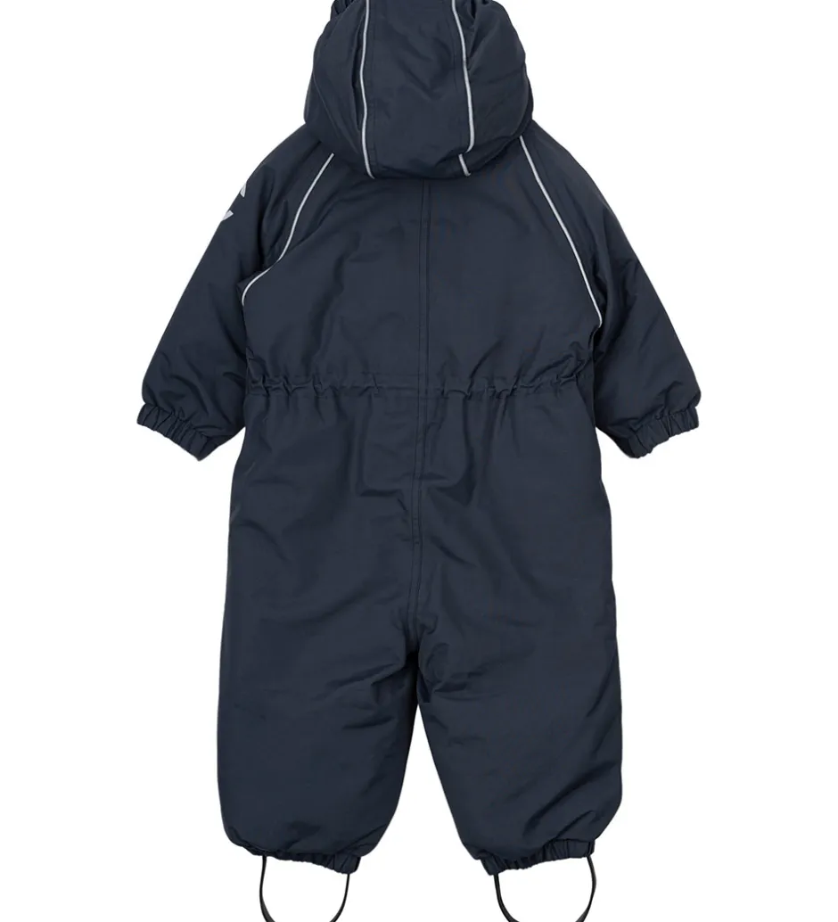 Skøn Mikk-Line flyverdragt i mørkeblå med refleksdetaljer.