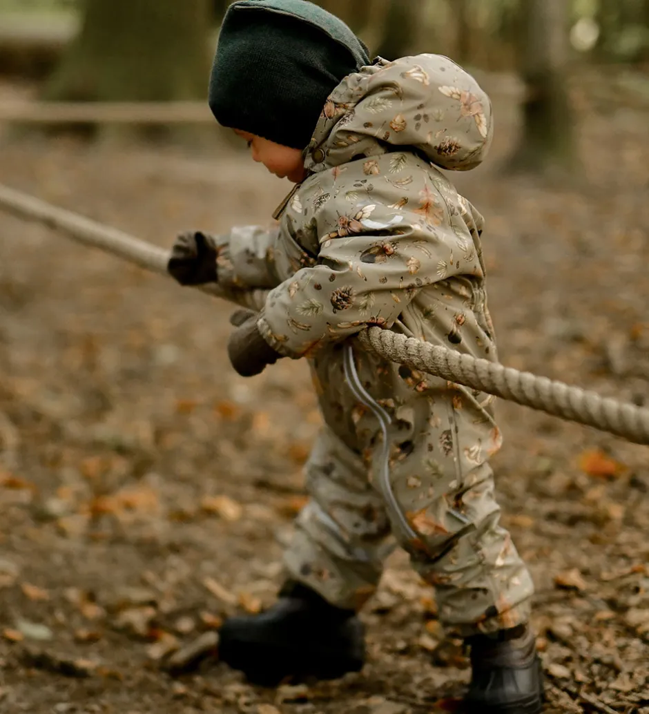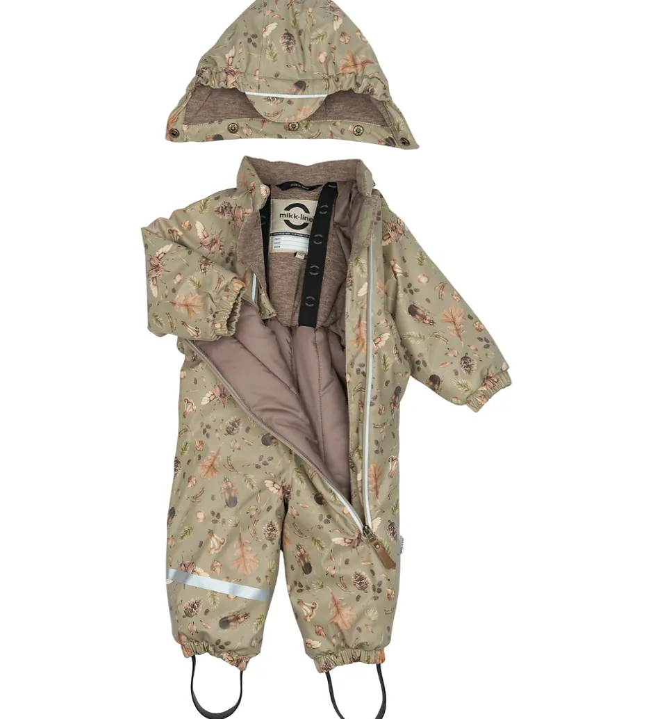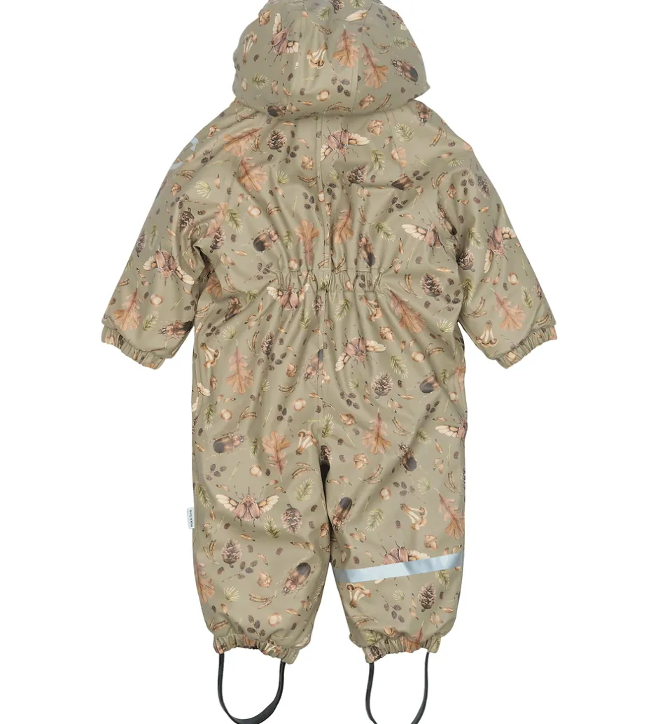 Fin Mikk-Line flyverdragt i lysegrøn PU med print af insekter, blade og andre naturmotiver. Flyverdragten har praktiske refleksdetaljer.