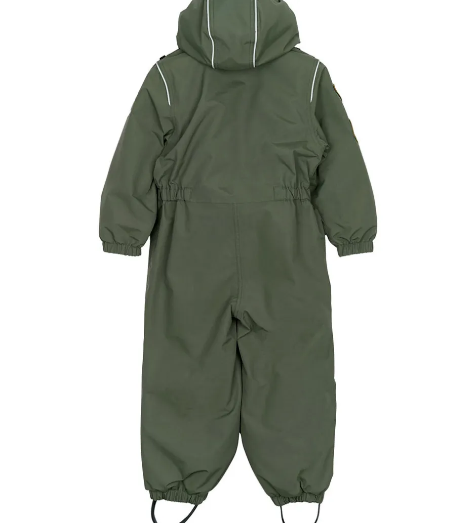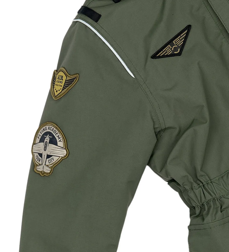 Sej Mikk-Line flyverdragt i støvet grøn med refleksdetaljer. Flyverdragten er lavet i et pilot-design, som har flotte applikationer og detaljer, så regntøjet ligner en uniform.