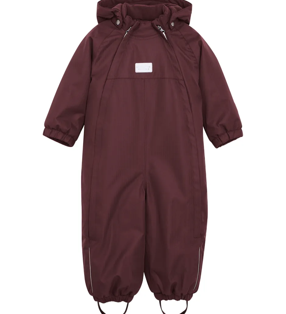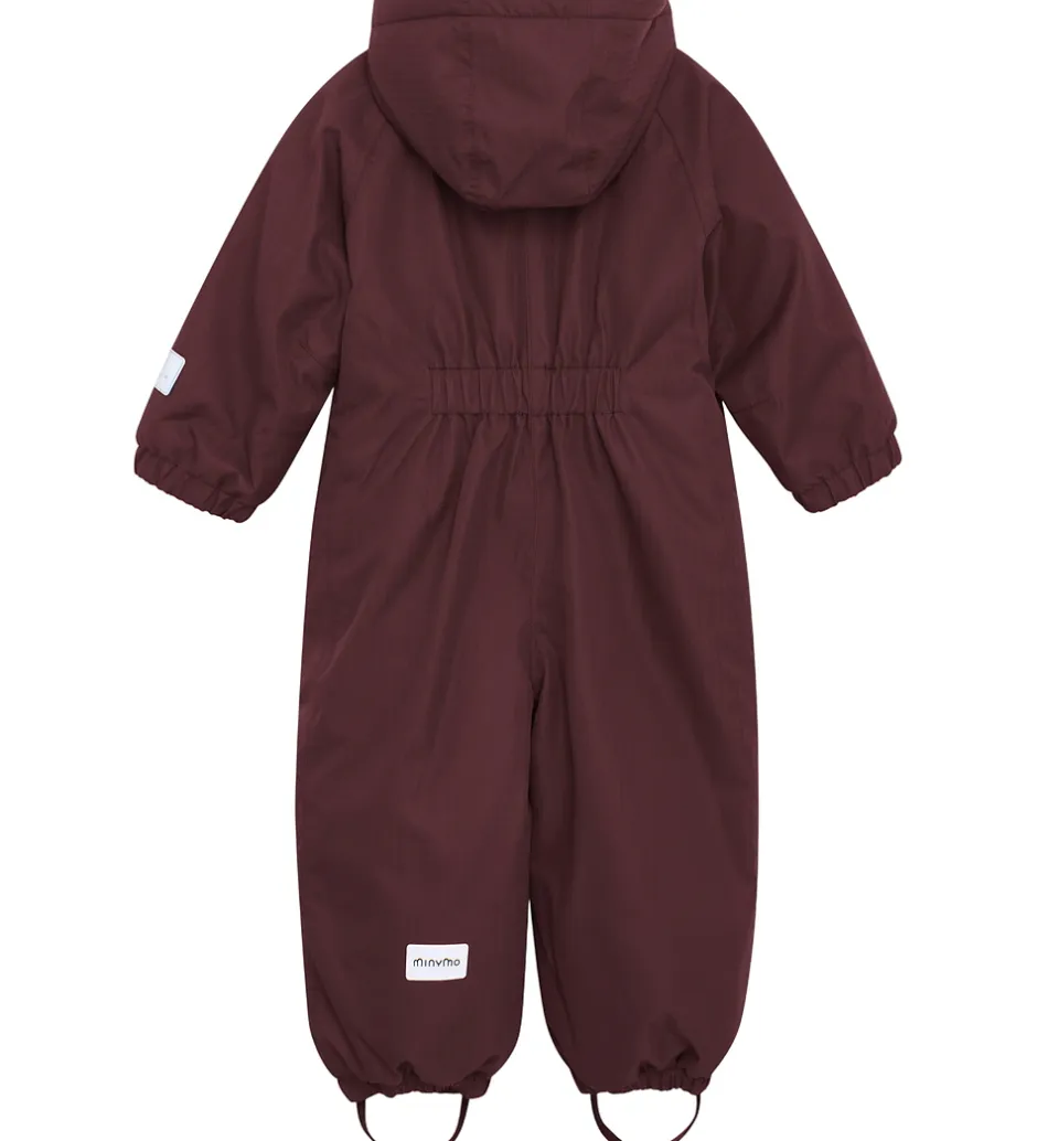 Dejlig Minymo flyverdragt i mørkelilla med flere velplacerede refleksapplikationer og -detaljer.