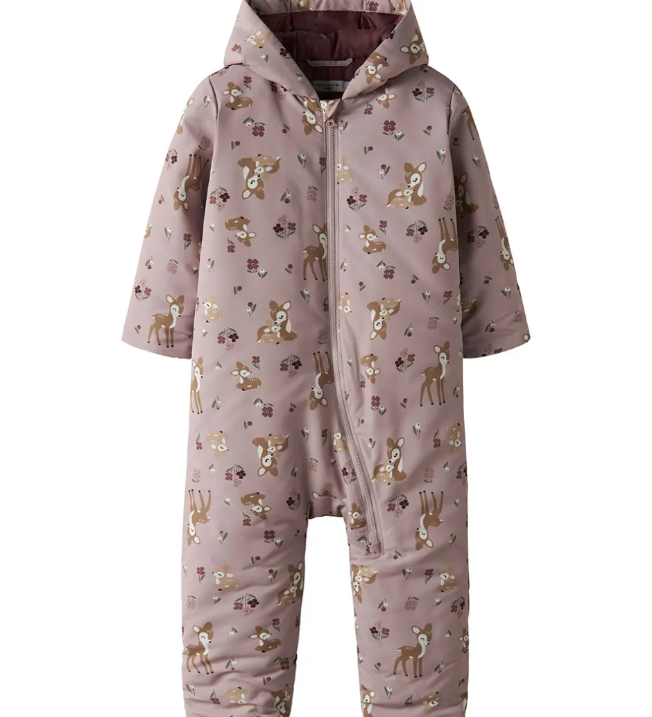 Flot Name It flyverdragt i en fin, violet farve med Bambi-print.