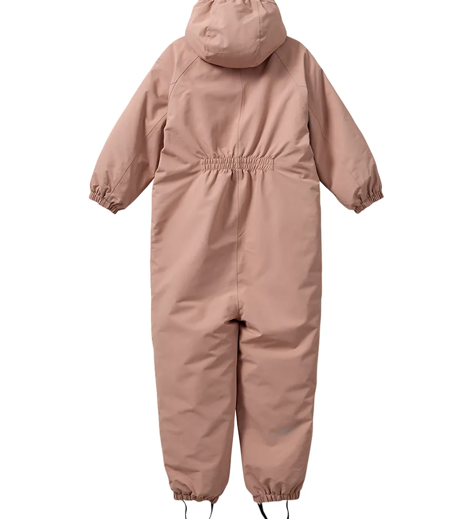 Sofie Schnoor flyverdragten har en aftagelig hætte, som fæstnes med trykknapper omkring den fleeceforede halskrave. Hætten har en elastikkant, så den sidder godt til hovedet, og så har flyverdragten en gennengående lynlås, med dobbelt vindstolpe der lukkes med velcro. Flyverdragten er foret med lækker fleece, mens ærmerne har glatvævet for, samt har ærmerne praktiske snefang i strækbart polyester. På fronten af flyverdragten er to lommer der lukkes med magneter. I benåbningerne er der aftagelige, justerbare elastikstropper til at sætte under støvlerne.
