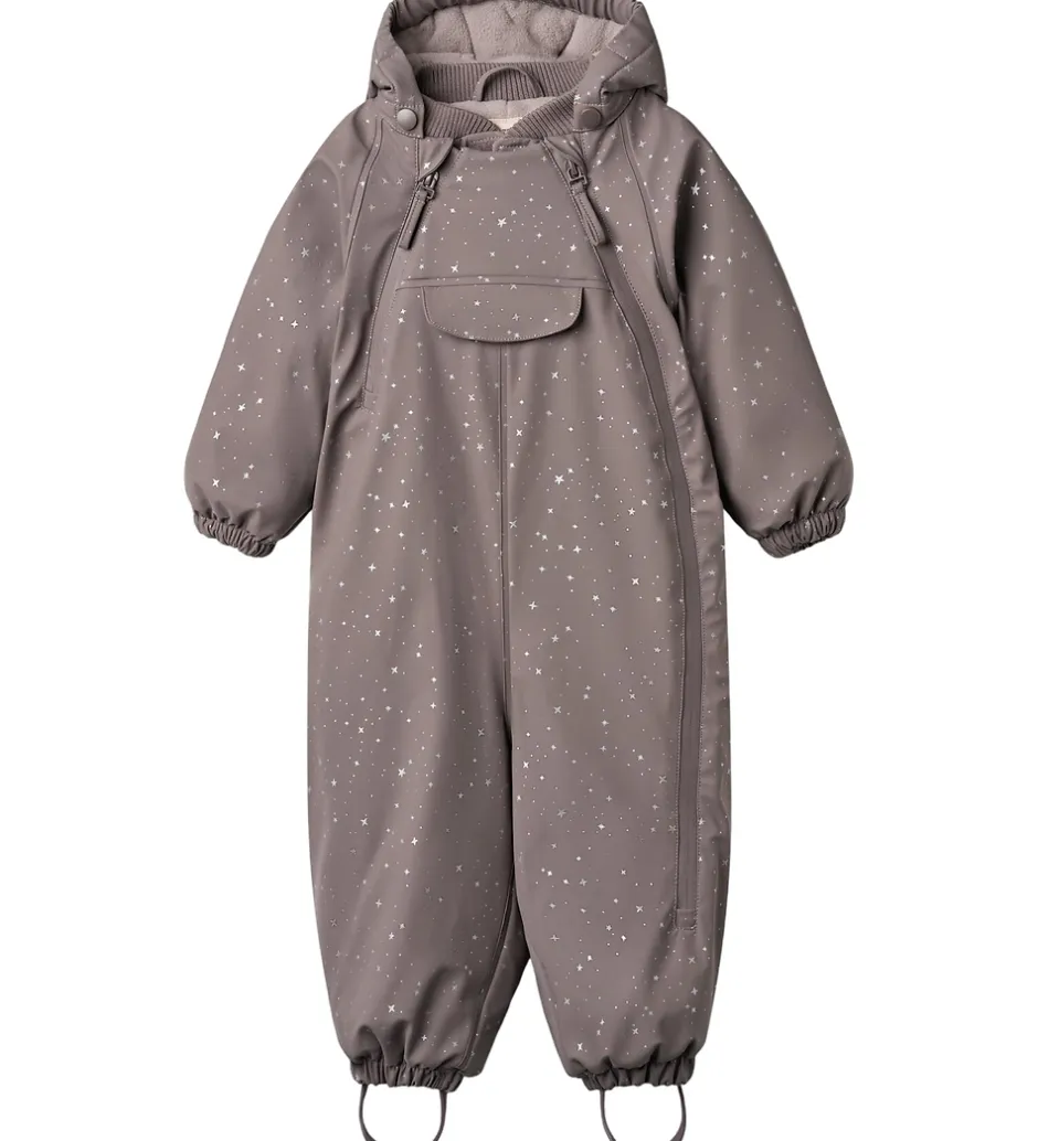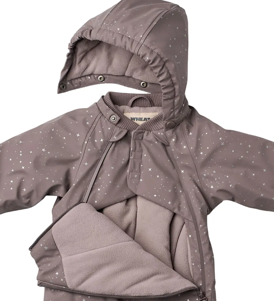 Lækker Wheat flyverdragt af PU i lilla med et lyst print af små stjerner.