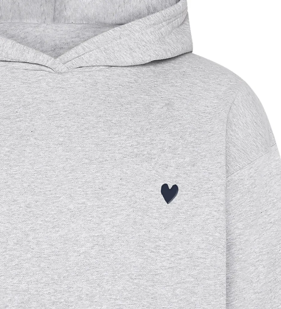 Lækker Grunt hættetrøje i gråmeleret sweat. Hætterøjen har en hætte med et bomuldsfor, og den har brede ribkanter. På indersiden har den blødt, børstet bomuld.