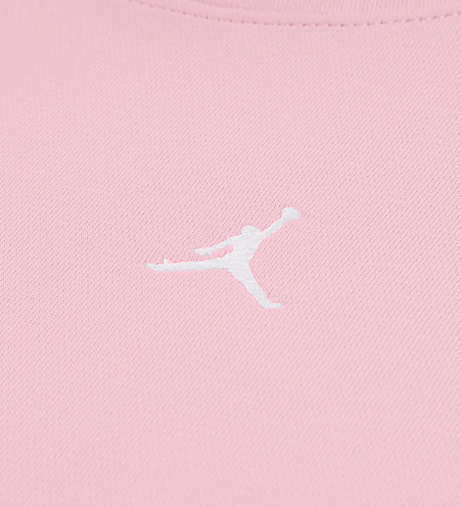 Fint Jordan sweatsæt bestående af en hættetrøje og et par sweatpants i rosa med det karakteristiske logo broderet i hvid.
