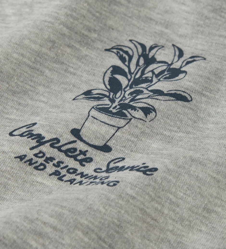 Elegant LMTD hættetrøje i en lys grå nuance. Hættetrøjen har en stilren struktur med ribkanter ved håndleddene og i bunden. På brystet findes et diskret print af en plante sammen med teksten “Complete Service”. LMTD hættetrøjen har blødt børstet bomuld på indersiden.