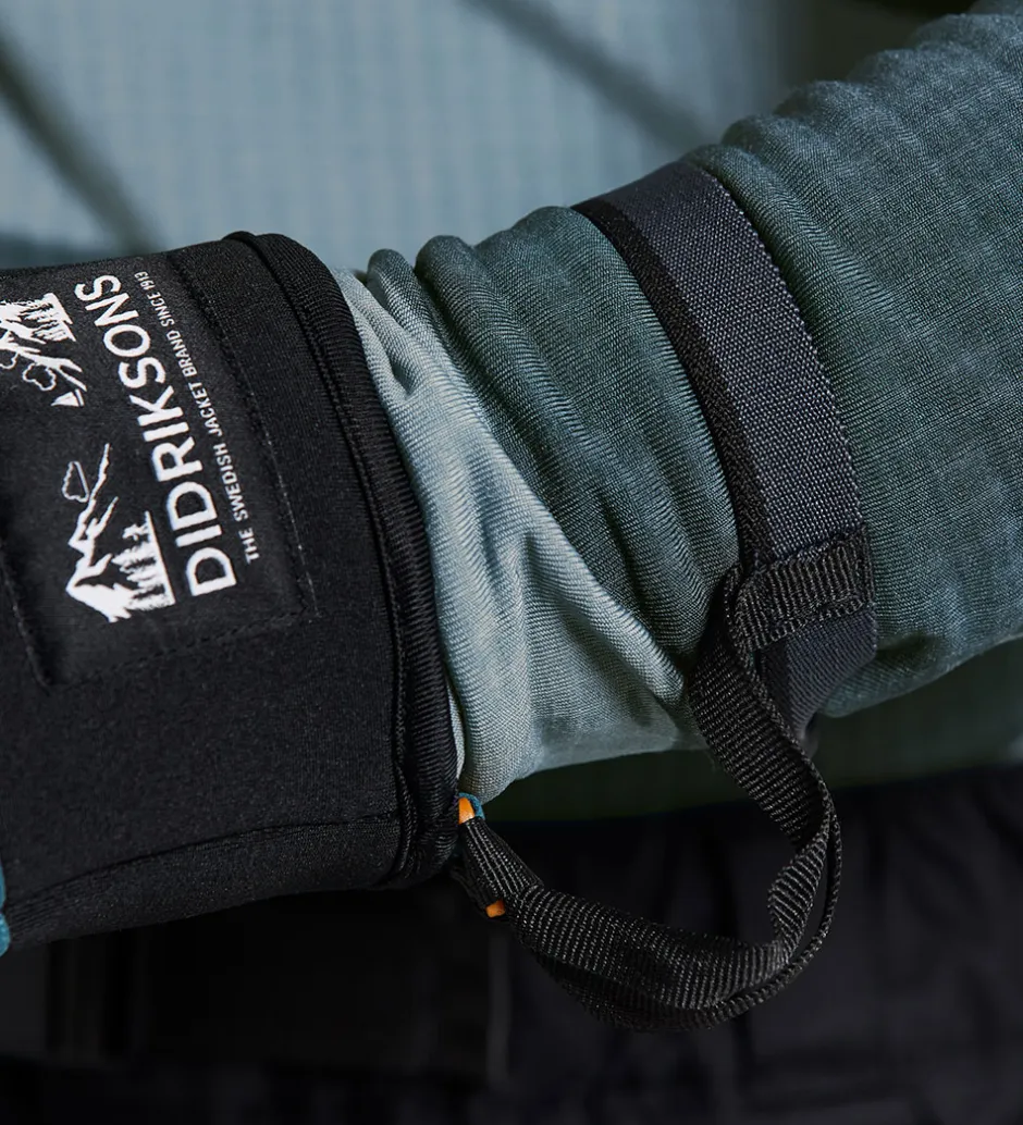 Didriksons handskerne har en smart neoprenkant i åbningerne samt elastikkant og velcrojustering omkring håndleddet, så kulde, sne og regn ikke let trænger ind. I håndfladerne er der belægninger af firkantede dupper, der giver en god gribeflade.