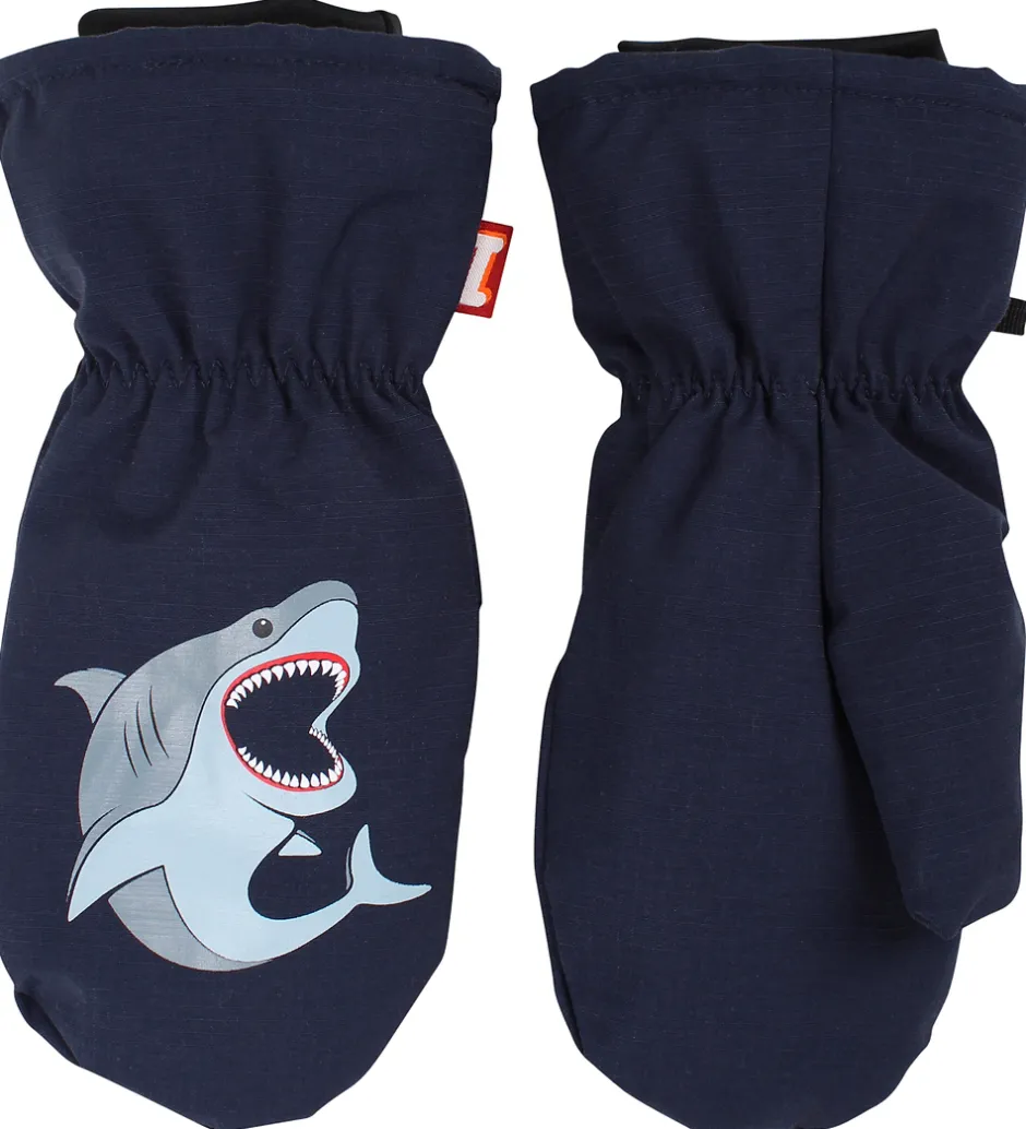 Dejlige DYR luffer i navyblå med et print af en hvidhaj.