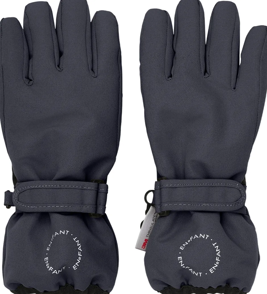 Fine En Fant handsker i mørk koksgrå. Handskerne har refleksprint og sorte detaljer.
