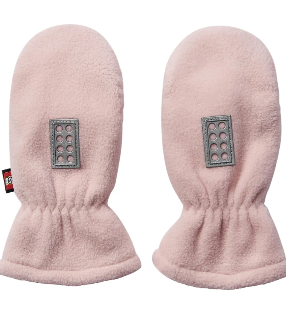 Lækre LEGO® Wear luffer i rosa fleece. På oversiden af håndleddene er der påsyet en refleks, som ligner en LEGO® klods.