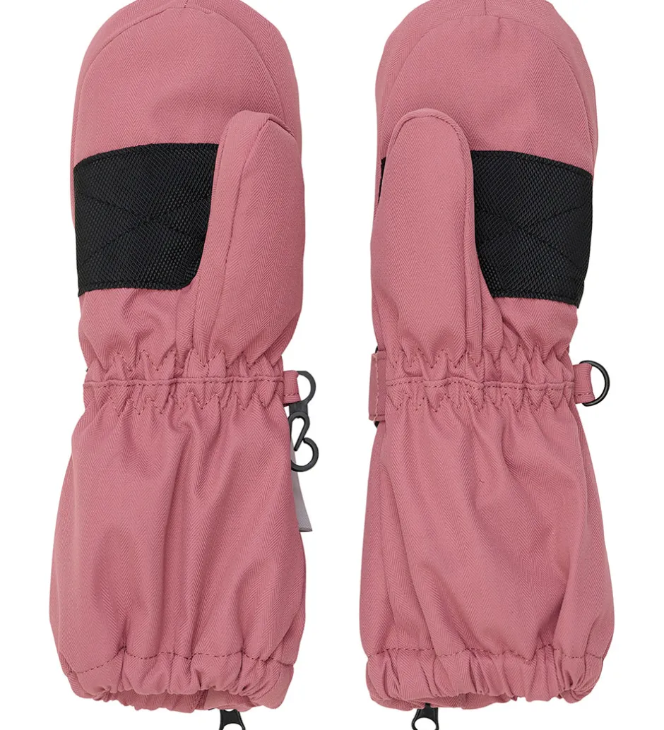 Flotte Minymo luffer i varm rosa med et lille reflekslogo øverst. Minymo lufferne har elastik i åbningen og en lynlås, som gør det let at få lufferne på. Ved håndleddene kan de strammes ind med en velrorem. Lufferne har blødt fleecefor indvendigt.