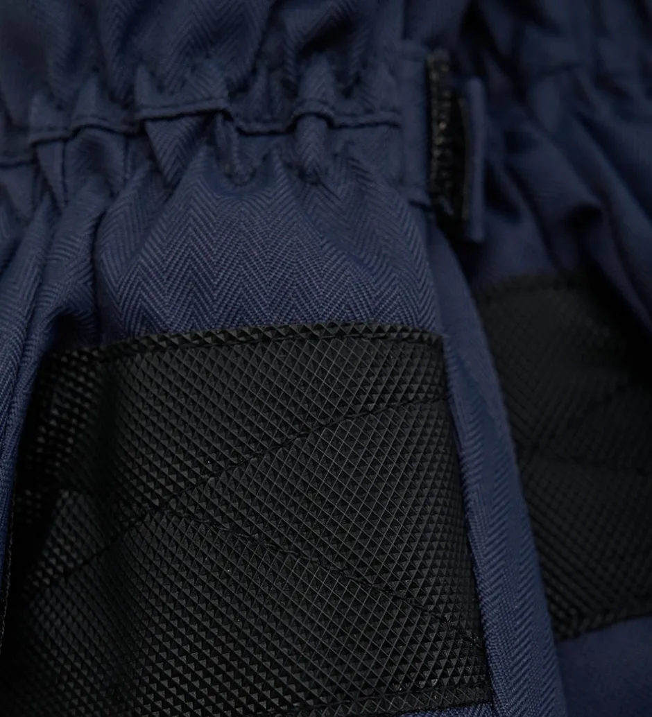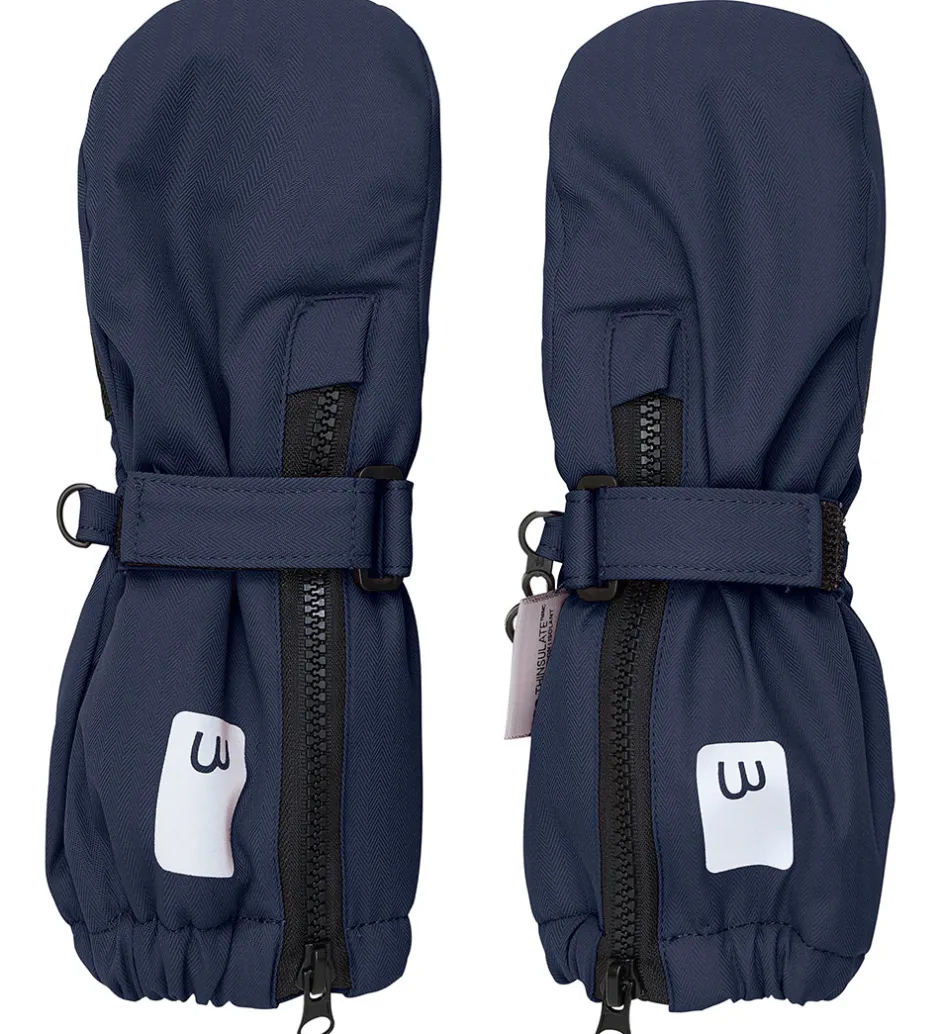 Smarte Minymo luffer i navyblå med et lille reflekslogo øverst. Minymo lufferne har elastik i åbningen og en lynlås, som gør det let at få lufferne på. Ved håndleddene kan de strammes ind med en velrorem. Lufferne har blødt fleecefor indvendigt.