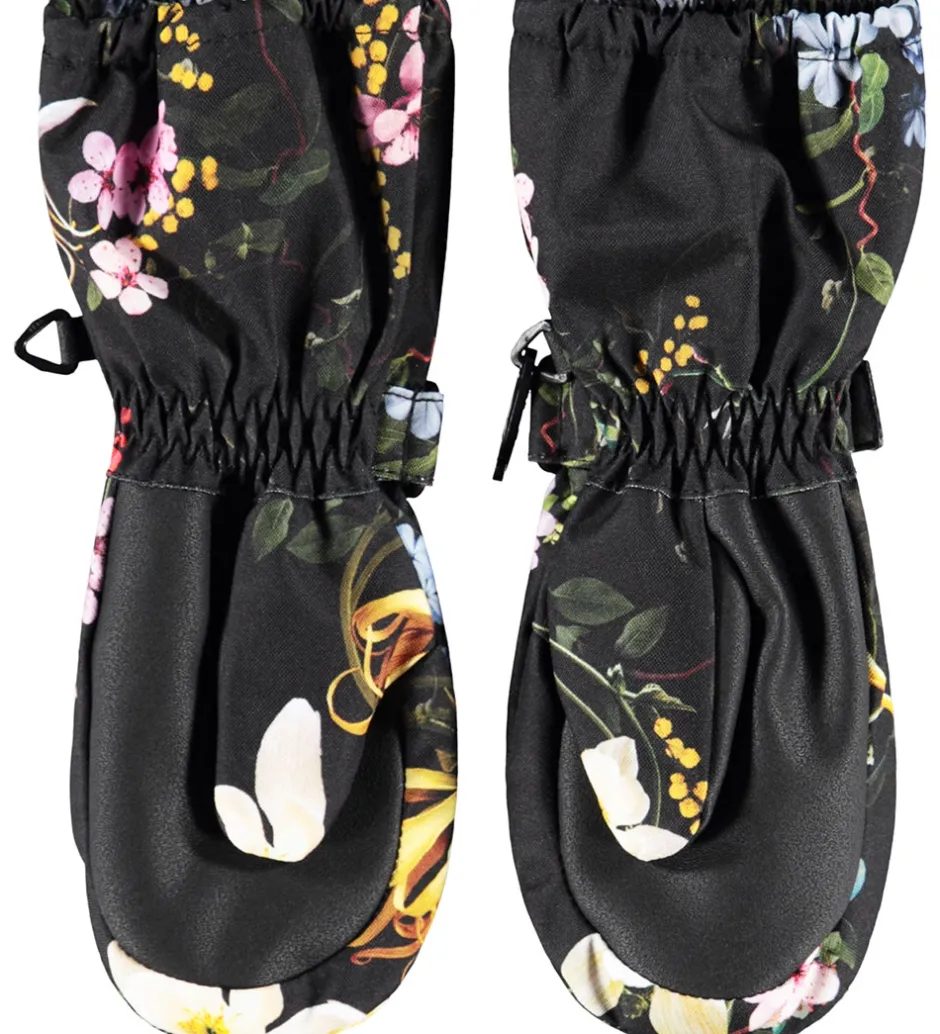 Skønne Molo luffer i sort med et smuk og farverigt alloverblomsterprint. Lufferne har også et logo-refleksprint.