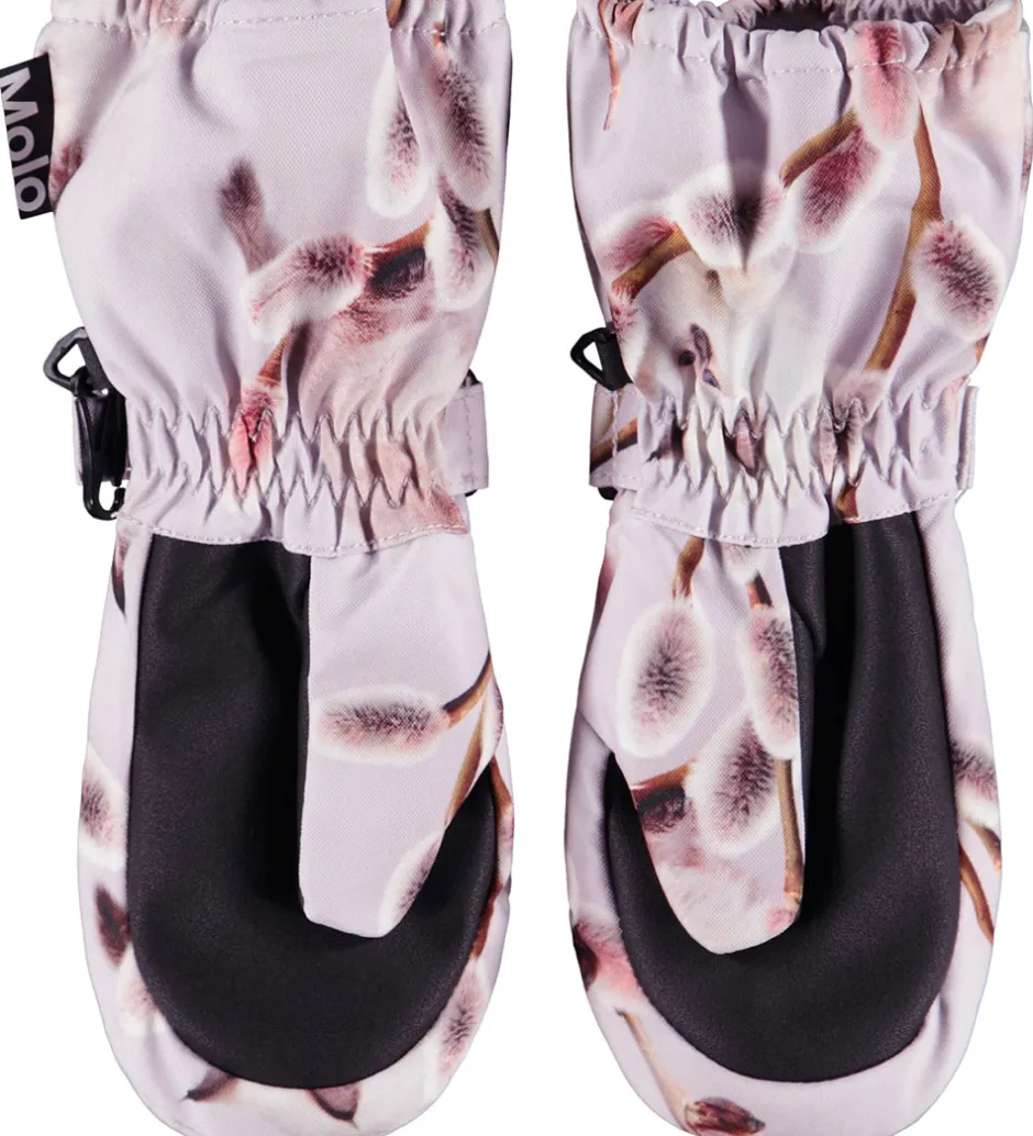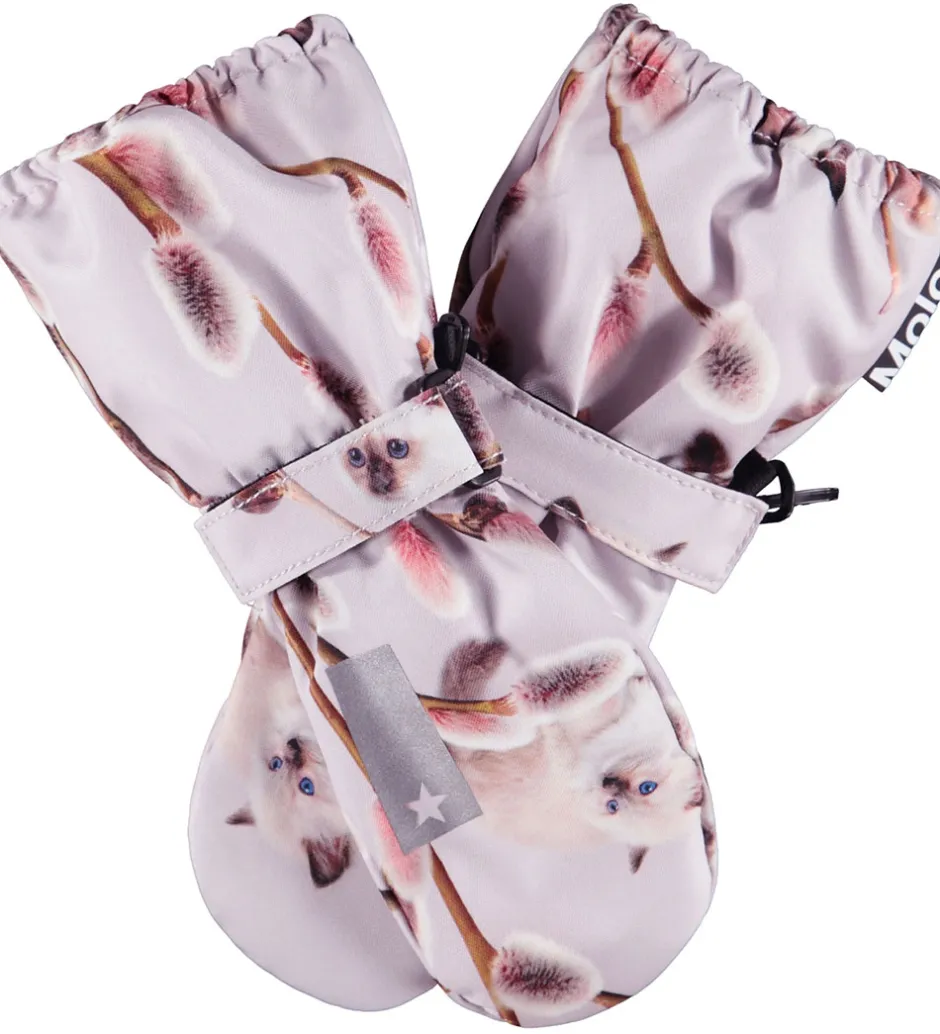 Skønne Molo luffer i et lyst rosa udtryk med et smukt alloverprint af piletræets gæslinger samt nuttede kattekillinger. Lufferne har også et logo-refleksprint.