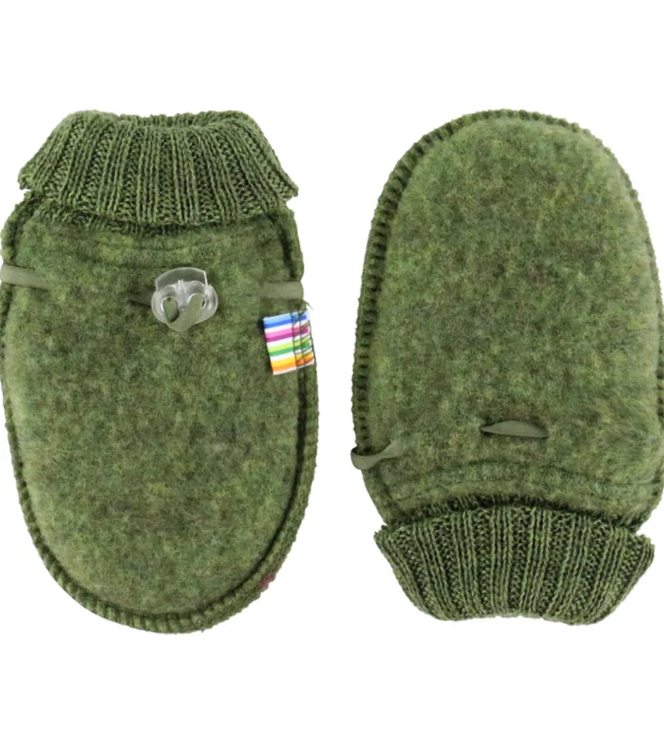 Joha lufferne er fremstillet af en kraftig, filtet merinouldskvalitet, der kan holde barnets hænder dejlige varme på de kølige dage.