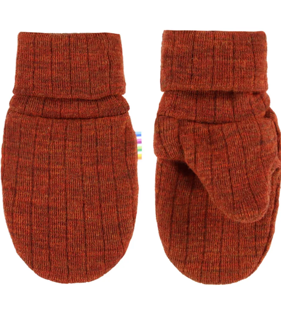 Flotte Joha luffer i en varm, rustrød nuance med ribstruktur. Joha lufferne har et enkelt design med tommel og ombukket ribkanter, der sikrer en god pasform, samt en praktisk snor imellem, så de ikke bliver væk.
