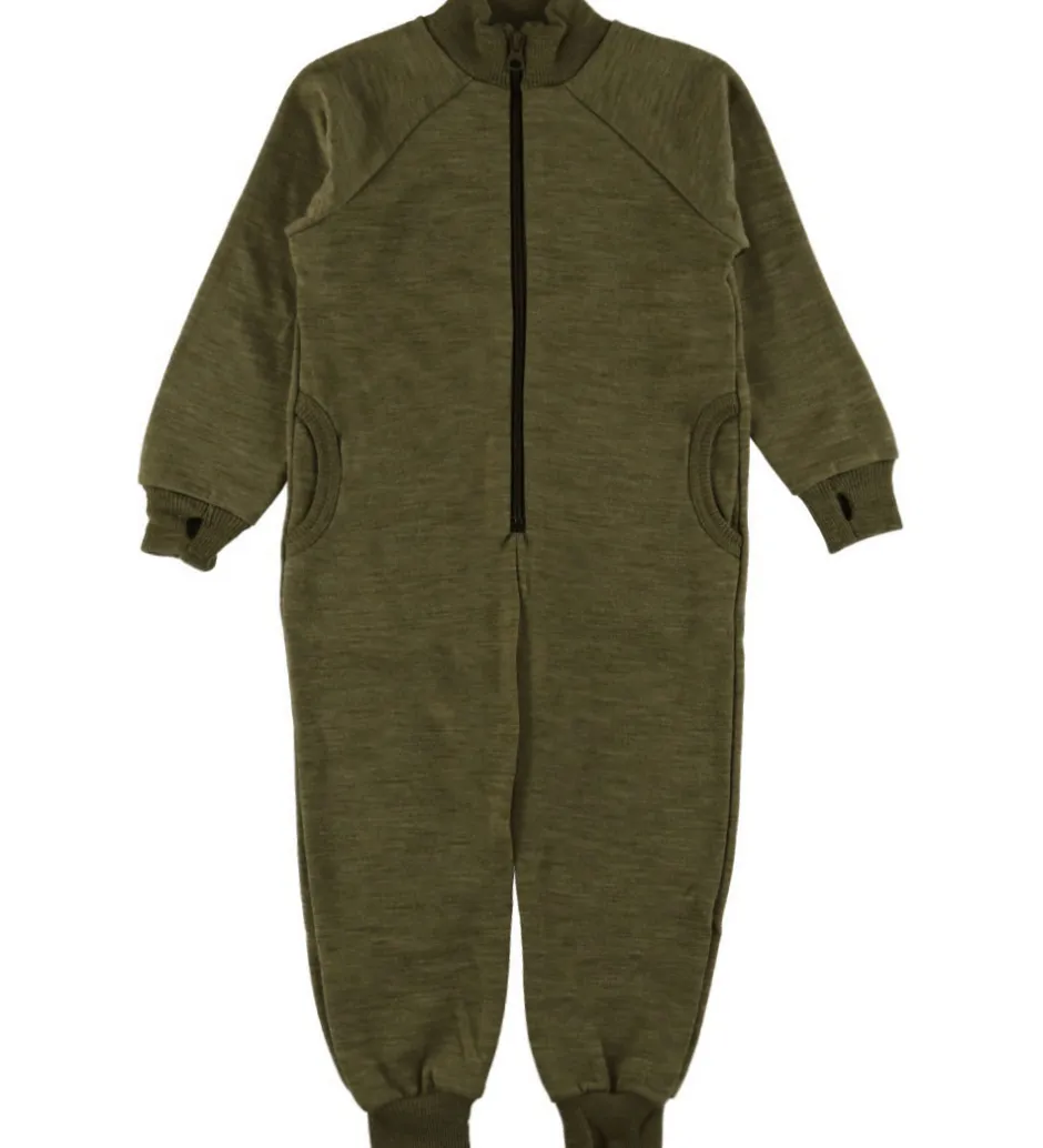 Praktisk Joha heldragt i en flot olivengrøn tone. Joha heldragten har lange ærmer og ben, hvilket gør den velegnet til forskellige temperaturer.