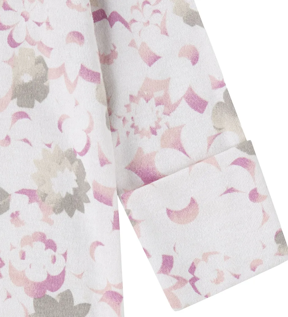Flot heldragt fra Nike i hvid med et allover blomsterprint i rosa, grå og beige nuancer. På venstre bryst er der et rosa logoprint.