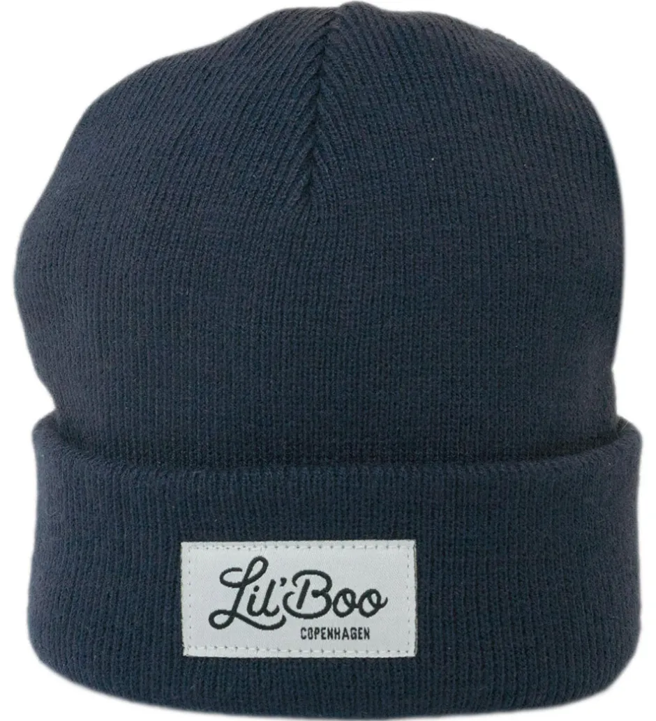 Stilfuld Lil’ Boo Copenhagen hue i en livlig navy farve med et synligt logo foran, der tilføjer et karakteristisk præg.