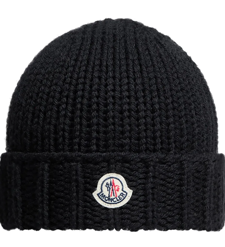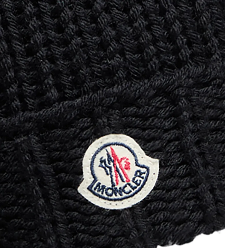 Flot hue fra Moncler i ensfarvet sort i en strikket uldkvalitet, og fortil sidder der et filtmærke med et logo.