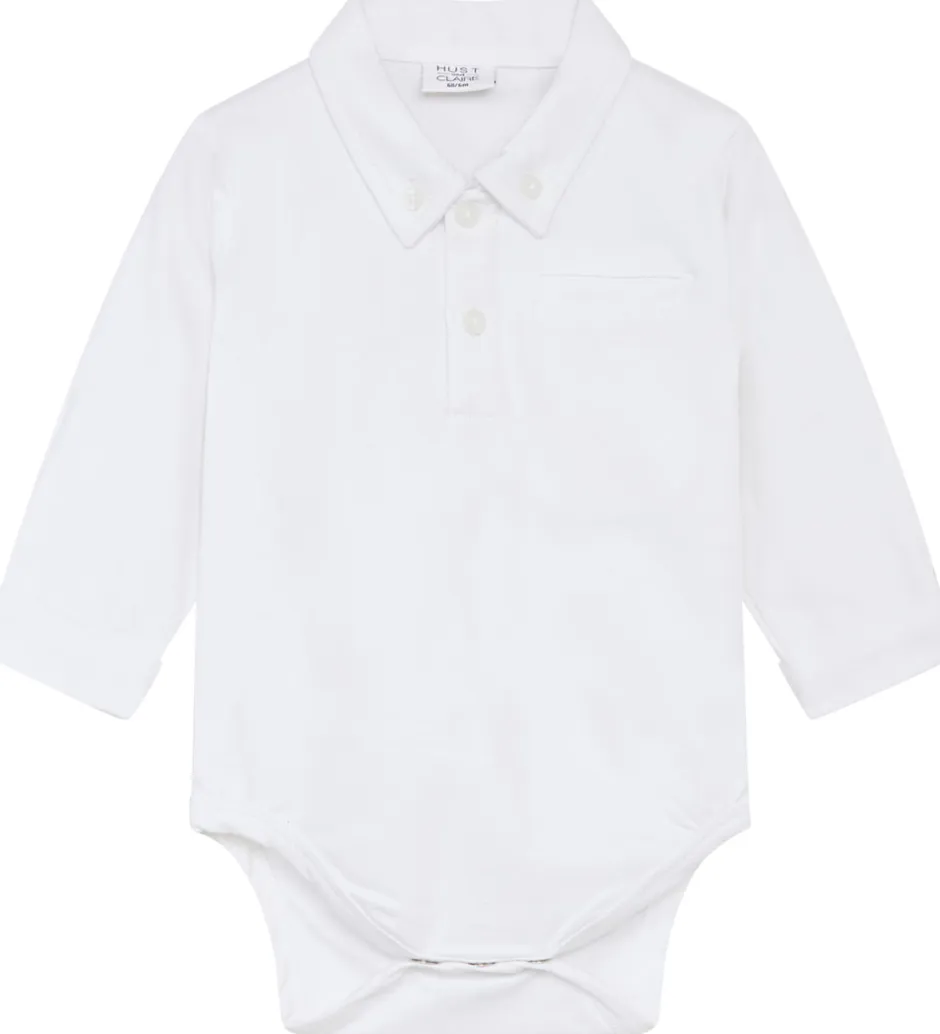 Hust and Claire skjorteboyen har lange ærmer med brede kanter og en enkelt manchetknap, og i halsåbningen har den en klassisk krave. I venstre side er der en snydelomme, og fortil har den en stolpelukning med knapper. Mellem benene er der trykknapper.