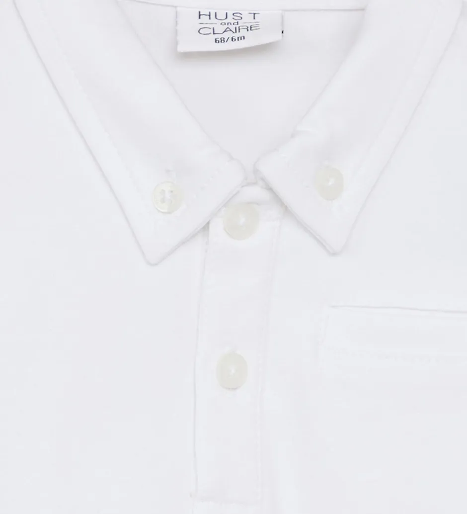 Elegant Hust and Claire skjortebody i ensfarvet hvidt bomuldsjersey.