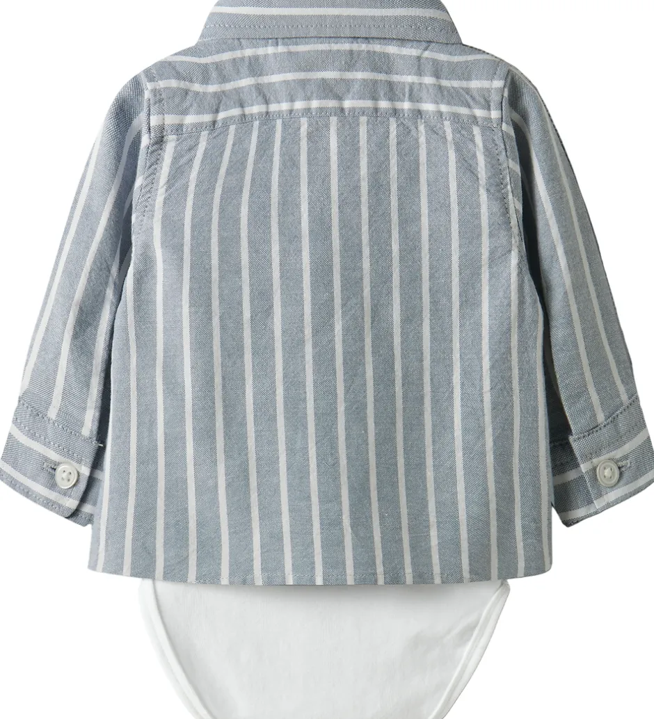 Smart Name It skjortebody i en flot blåstribet variant. Designet fremstår tidløst med hvide striber og et lille logo på brystet. Stoffet har en tæt struktur, som sikrer en god pasform.