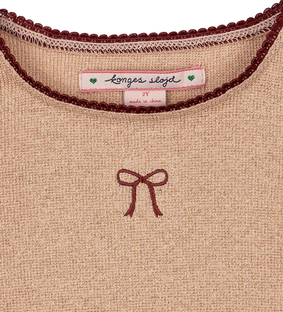 Fin Konges Sløjd bluse i rosa med glimmer, og den er lavet i en strækbar kvalitet.
