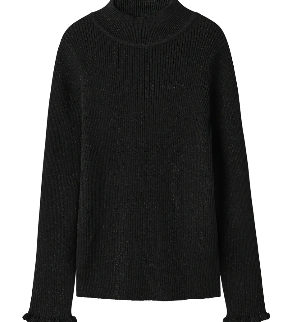 Blusen har en fin ribstrikket struktur, der skaber et tidløst udtryk. Med lange ærmer og en diskret rullekrave er denne bluse enkel og stilren. Name It blusen har dekorative detaljer ved ærmeenderne, som tilføjer en let feminin kant.