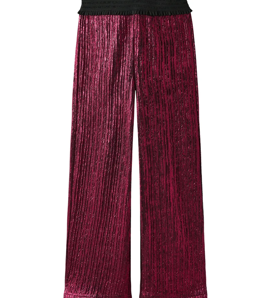 Seje bukser fra Name It skinnende, metallisk fuchsia med stribet struktur. Name It bukserne har en bred, sort elastik i taljen, som giver en behagelig pasform. Bukserne har en løs pasform med vidde ben, der skaber et moderne look.