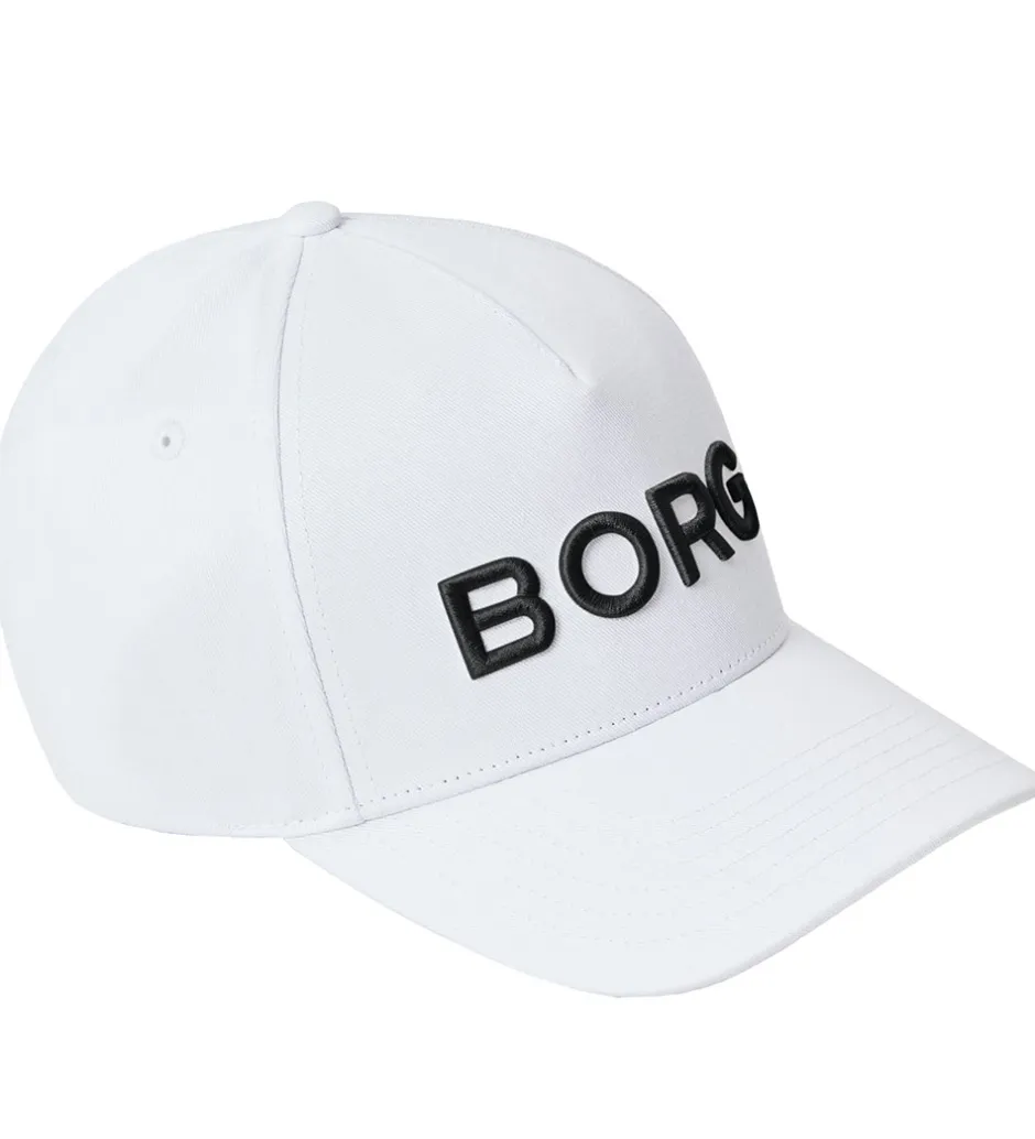 Flot Björn Borg kasket i hvid, og fortil står der “Borg” med kraftige, broderede bogstaver i sort.