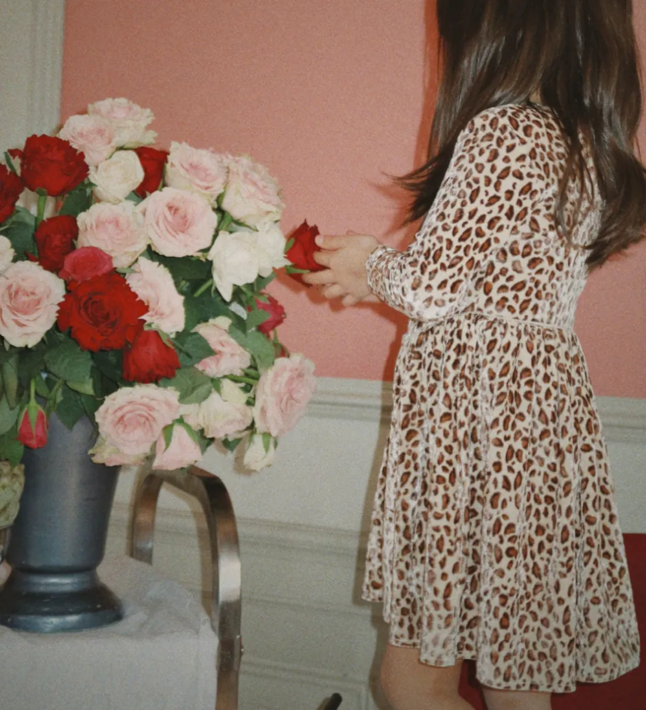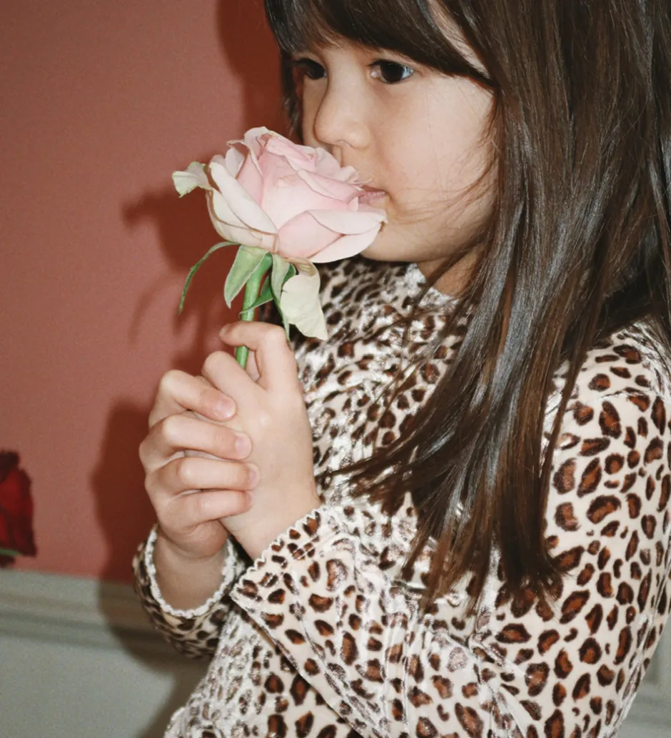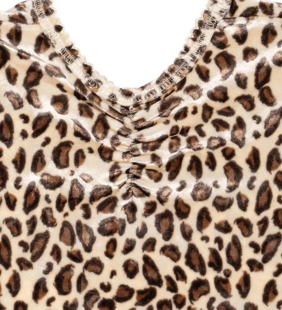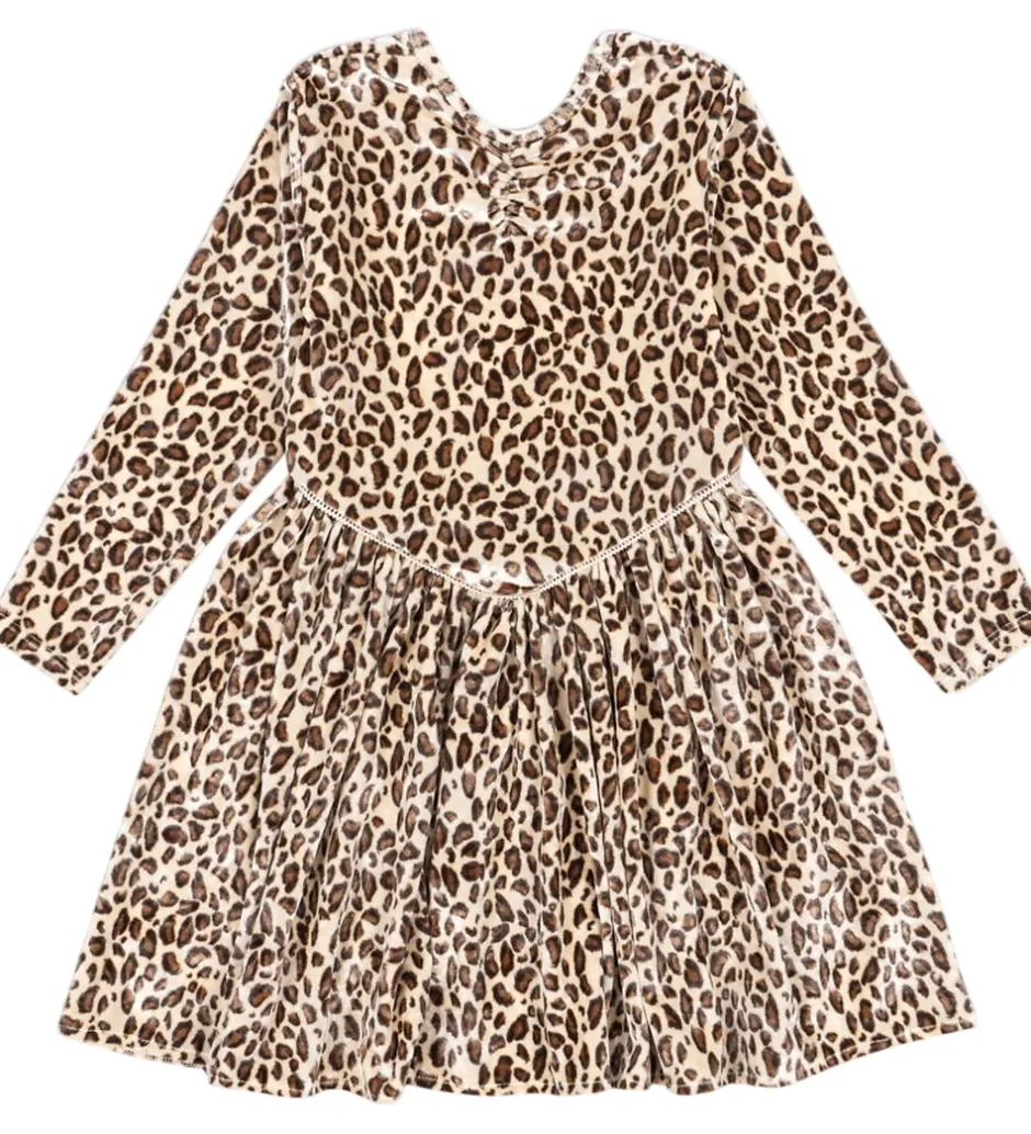 Flot kjole fra Konges Sløjd med et flot leopardmønster i brune og beige nuancer, og med en lækker velour-struktur. Konges Sløjd kjolen har lange ærmer og en rund halsudskæring. Kjolen er designet med et fint skørt, der giver et let udtryk.