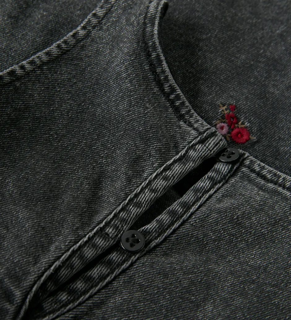 - Medium Grey Denim/FLOWER EMB