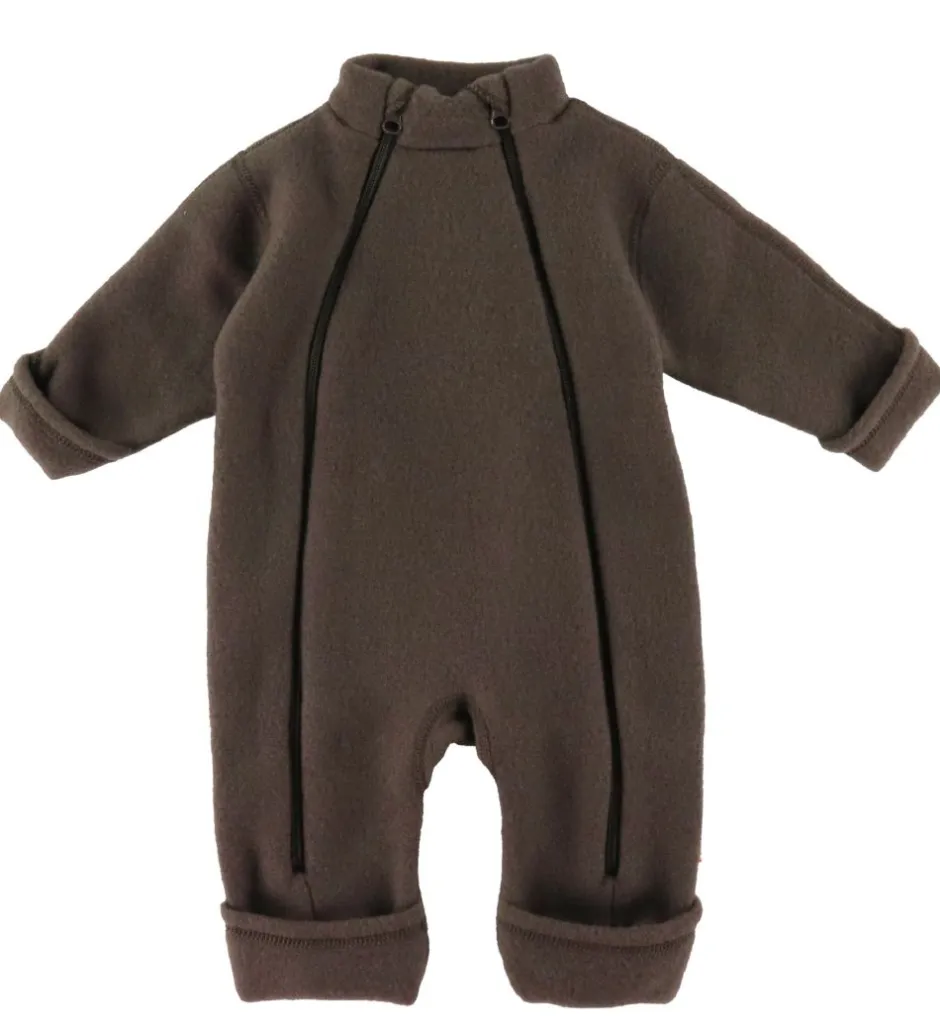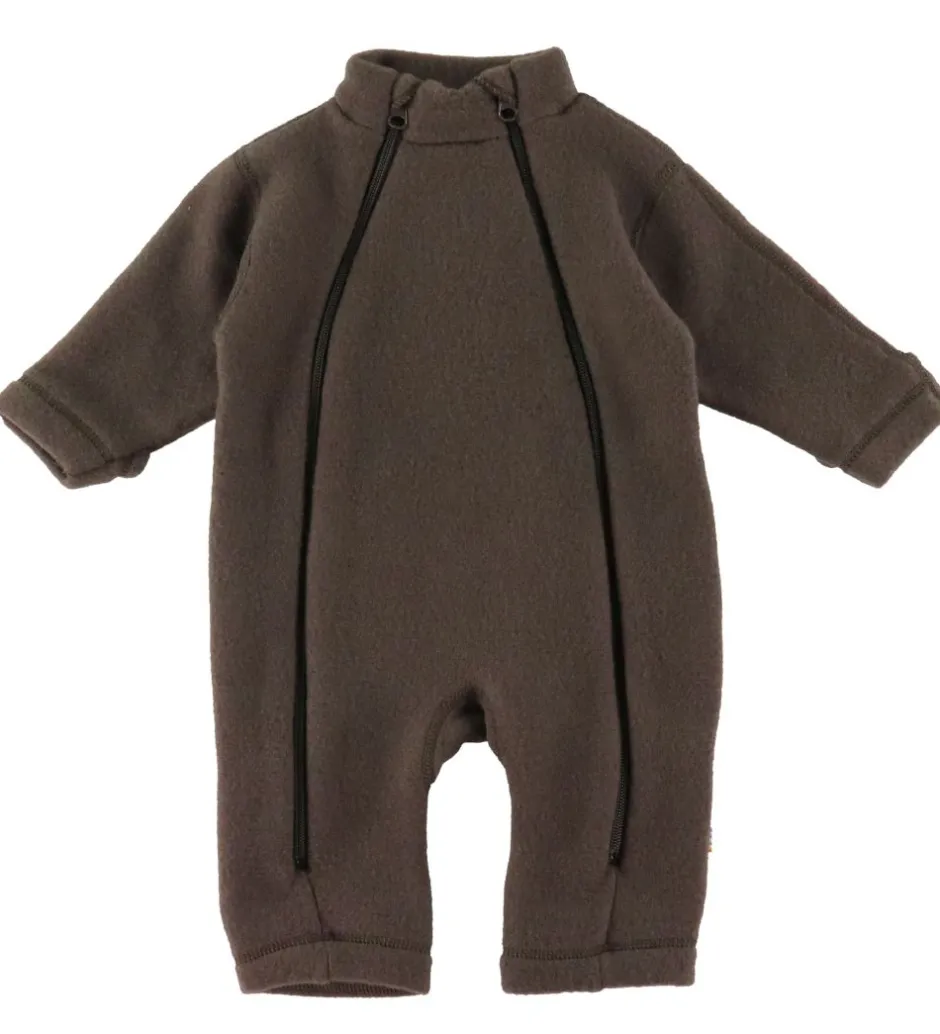 Joha køredragten har lange ærmer og ben med praktiske ombuk, der kan pakke barnets hænder og fødder godt ind. Køredragten åbnes fortil med praktiske lynlåse, som går fra halsen og ned ad benene. Køredragten er lavet af en kraftig, filtet uldkvalitet, der føles rigtig blød og behagelig mod huden. Ulden sørger for, at barnet altid har den helt rigtige temperatur.