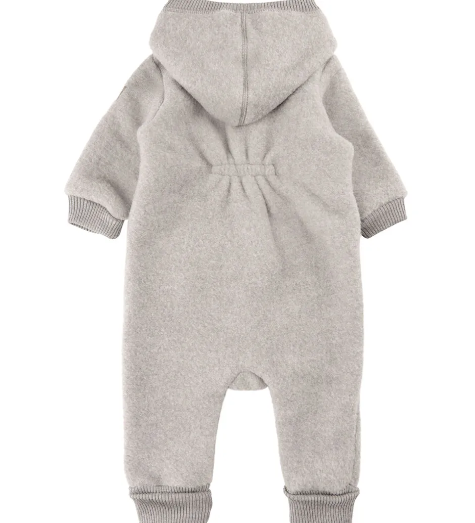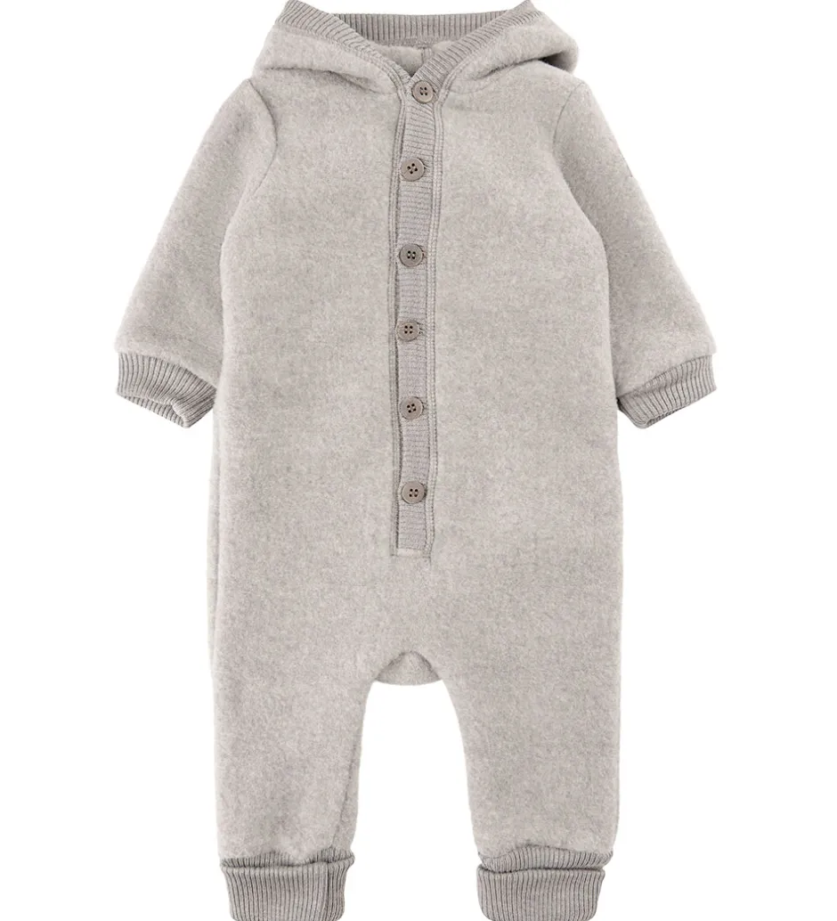 Sød Mikk-Line køredragt af filtet uld i meleret cremehvid.