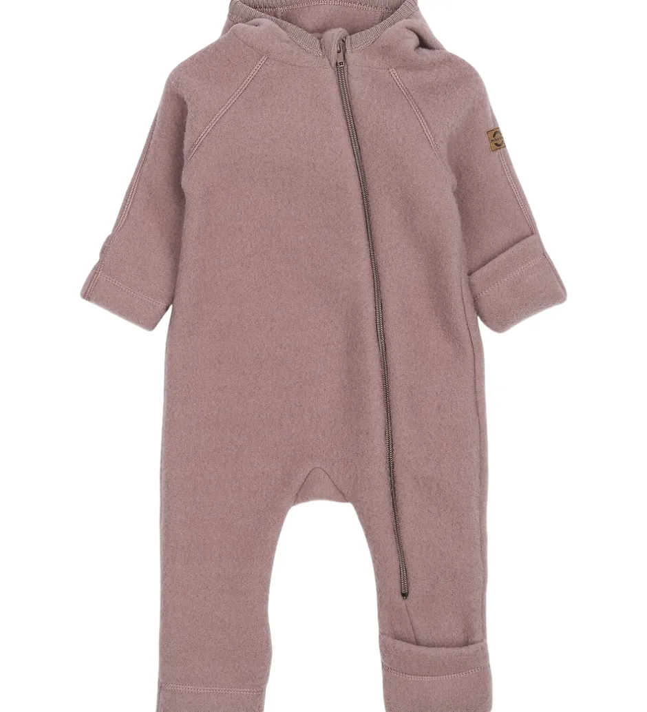 Sød Mikk-Line køredragt af filtet merinould i støvet lilla.